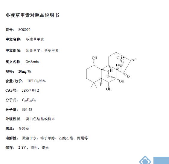 冬凌草甲素标准品-常用生化试剂-试剂-生物在线